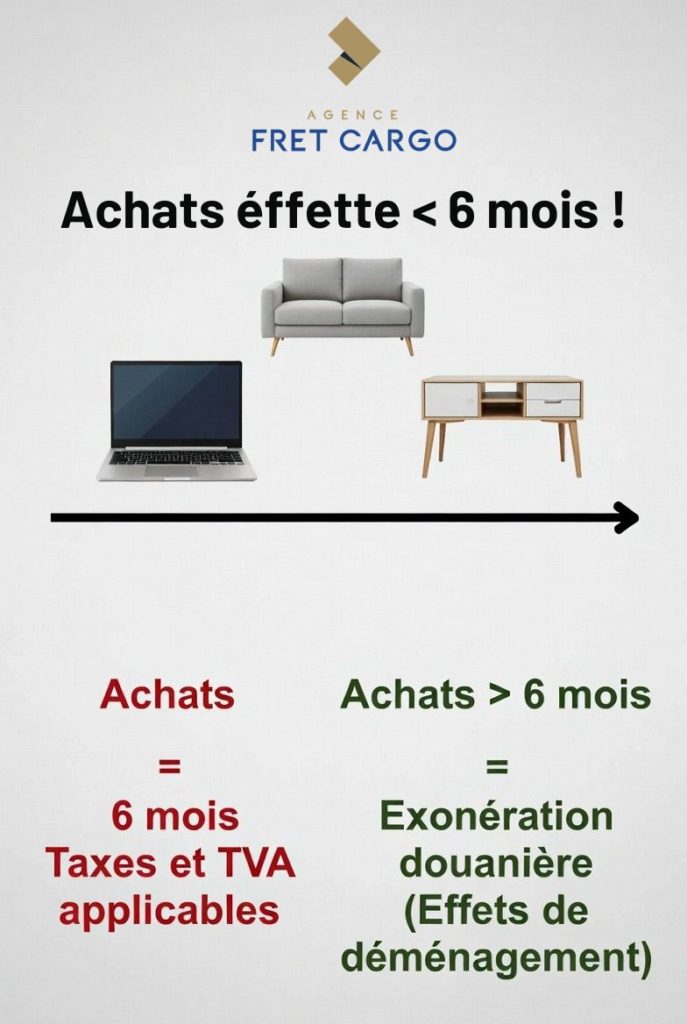 La règle d’or des 6 mois : La majorité des douanes internationales exigent que vos biens aient été en votre possession et utilisés depuis au moins 6 mois avant la date de votre déménagement. Si vous achetez un téléviseur neuf la semaine avant votre départ (surtout si vous gardez l’emballage d’origine), les douaniers le considéreront comme une importation commerciale. Vous devrez alors payer la TVA locale.